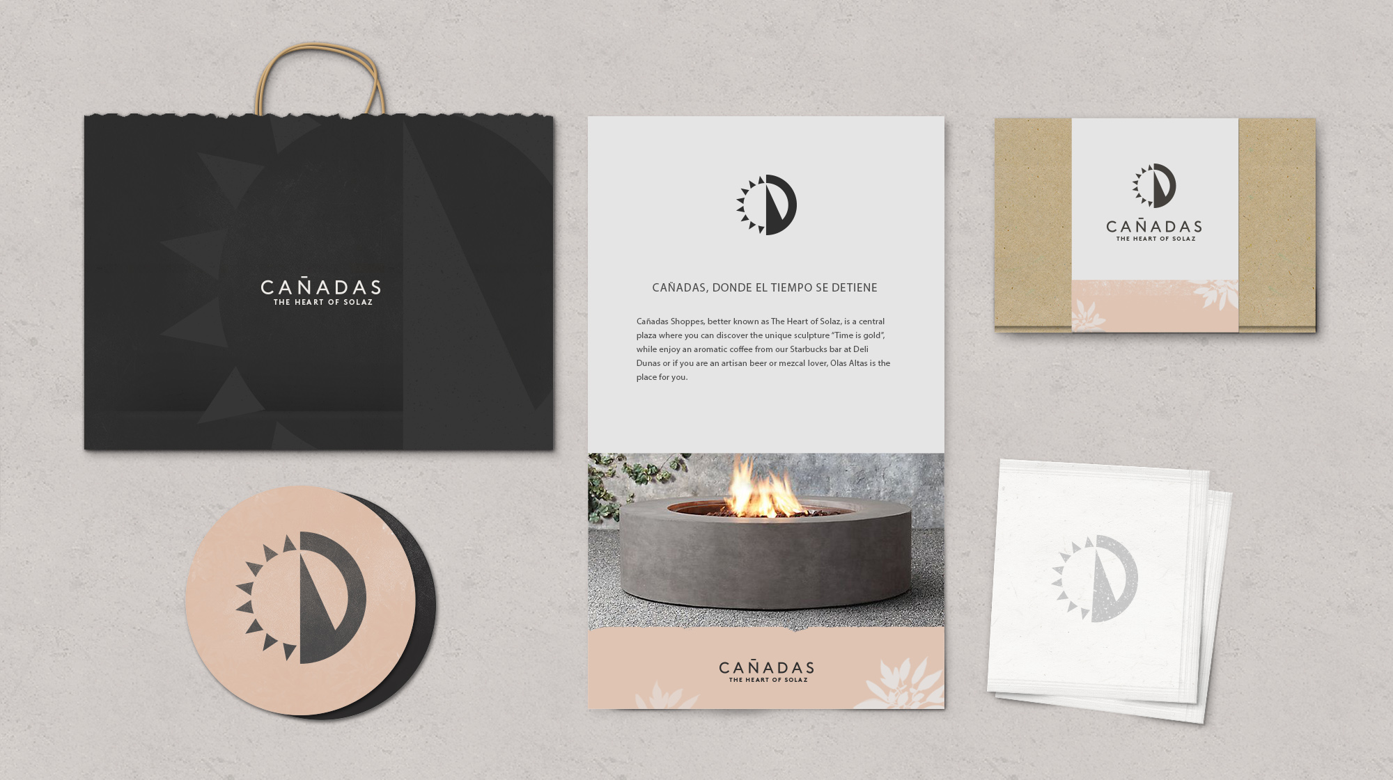 Better known as the Heart of Solaz, the central plaza offers guests a selection of deli, boutiques and craft beers. Pólvora designed the identity inspired in the sculpture “Time is gold” a solar dial placed at the center of the plaza.