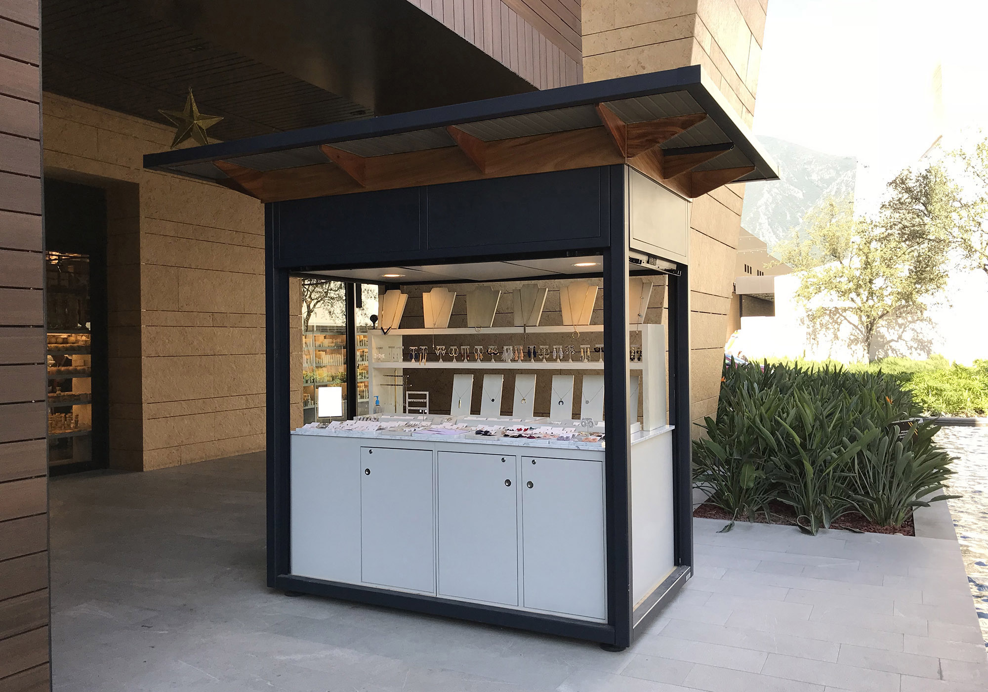 As part of the scope of the project, a series of pieces of furniture were designed to complement the spaces: Kiosks for the sale of products, cycloports, a set of modular benches and trash bins.