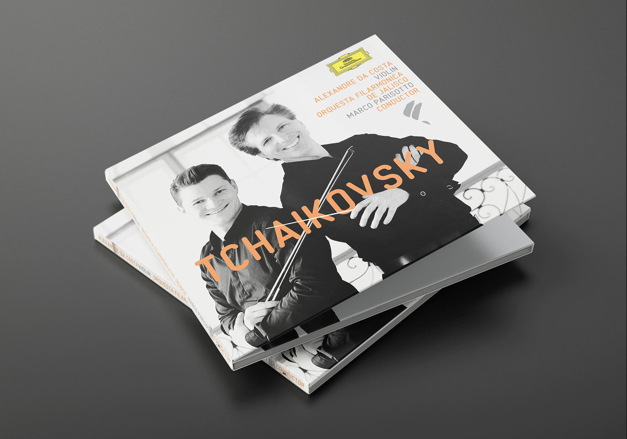 CD art and design for a collaboration between former philharmonic director Marco Parisotto and aclaimed violinist Alexandre da Costa. The cover features a photograph of the duo taken inside the Teatro Degollado, home of the orchestra.