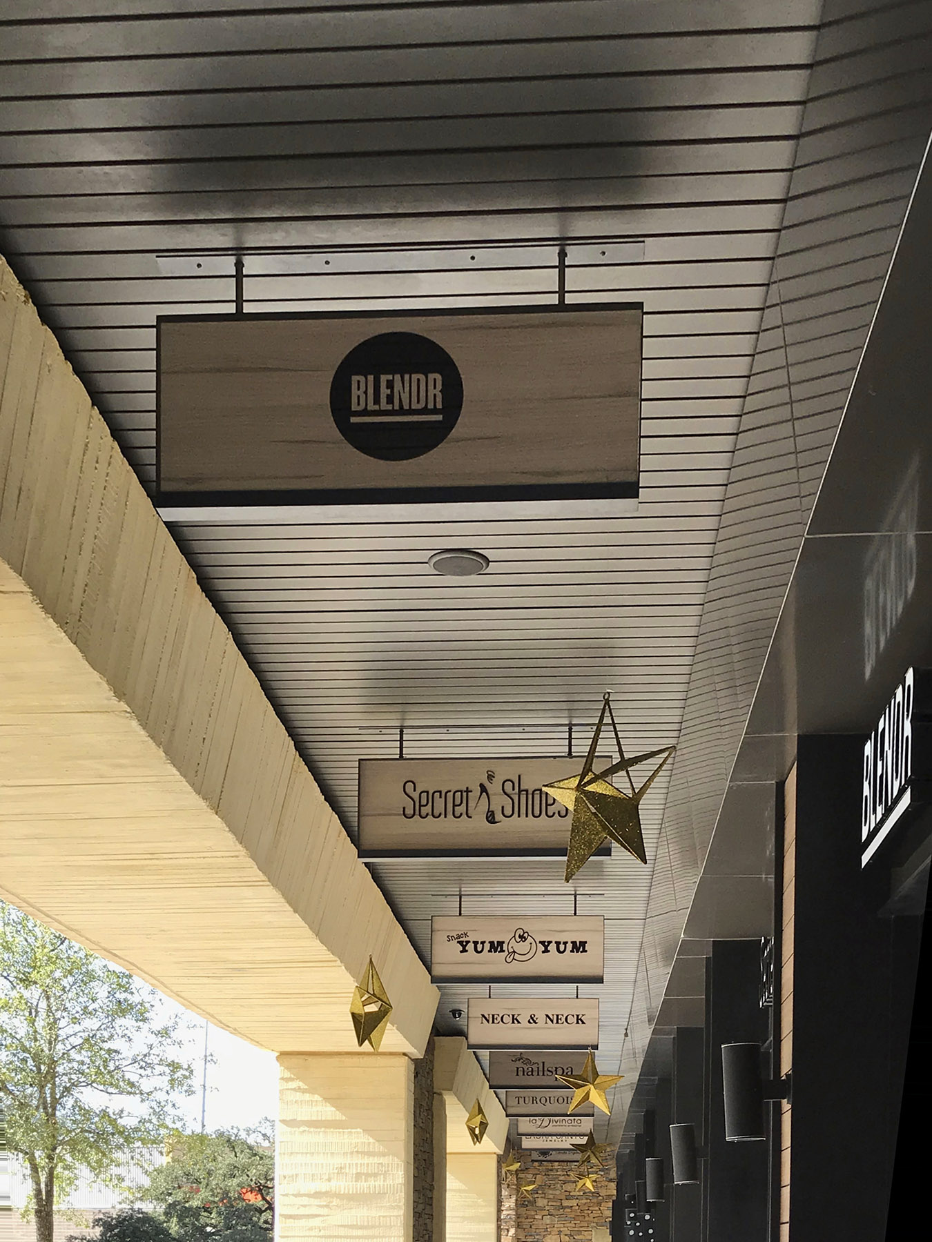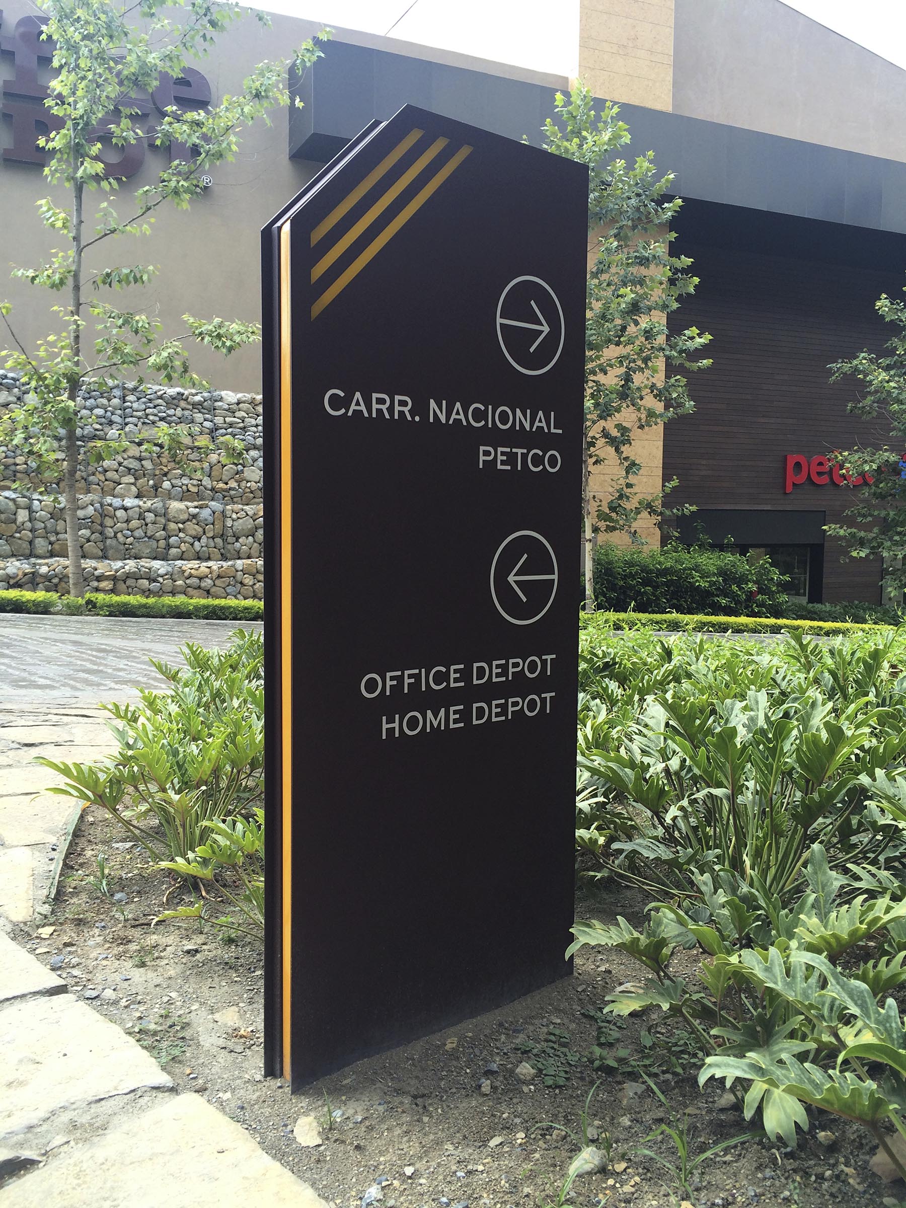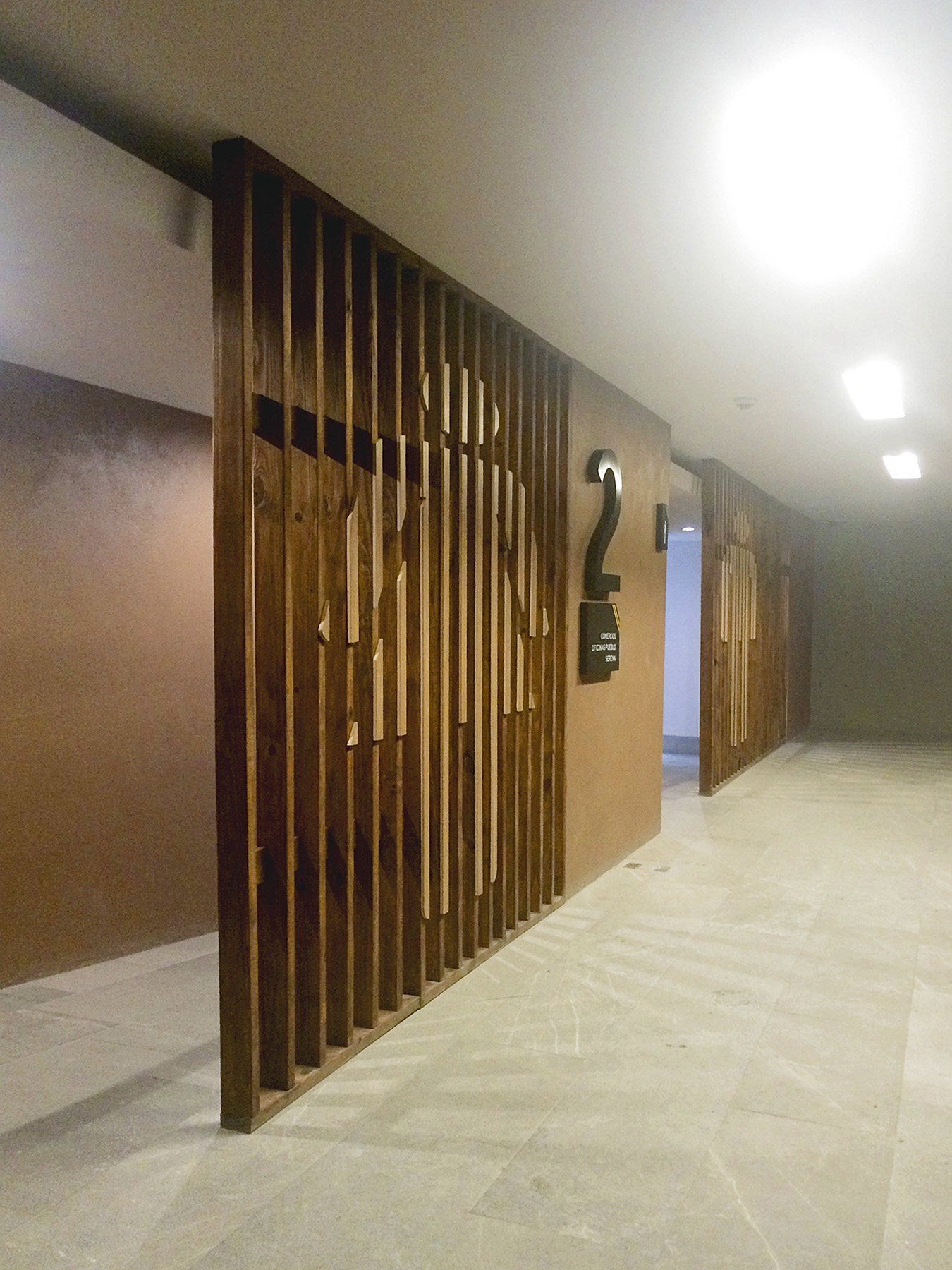 Diverse applications were designed, such as environmental graphics applied to latticework, illuminated hanging signs and level directories for every area.